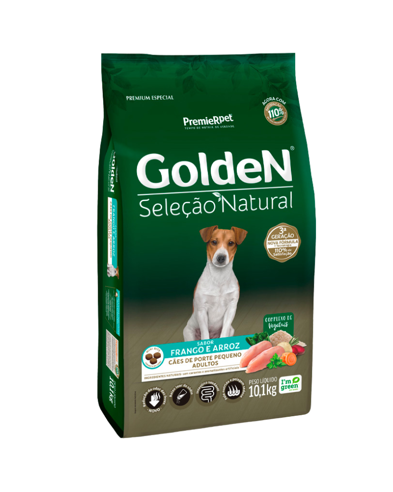 Ração Golden Seleção Natural Cães Adultos Porte Pequeno Frango e Arroz Mini Bits 10,1 kg