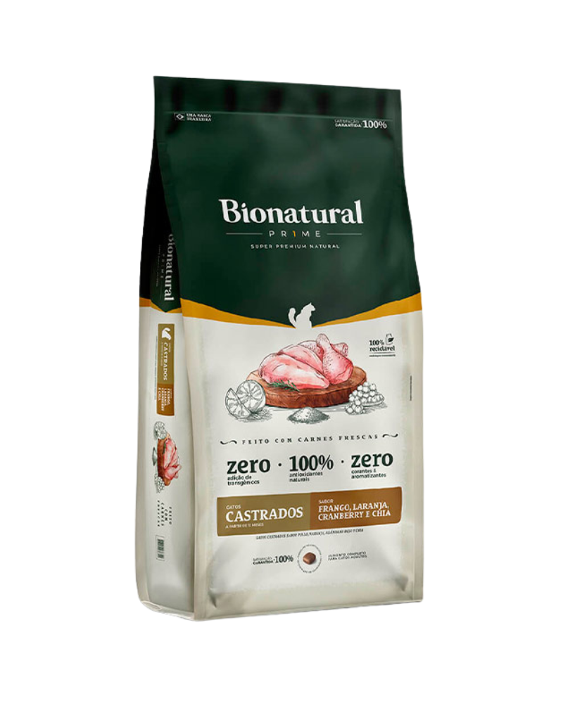 Ração Bionatural Prime para Gatos Castrados Sabor Frango, Laranja, Cranberry e Chia 7,5kg